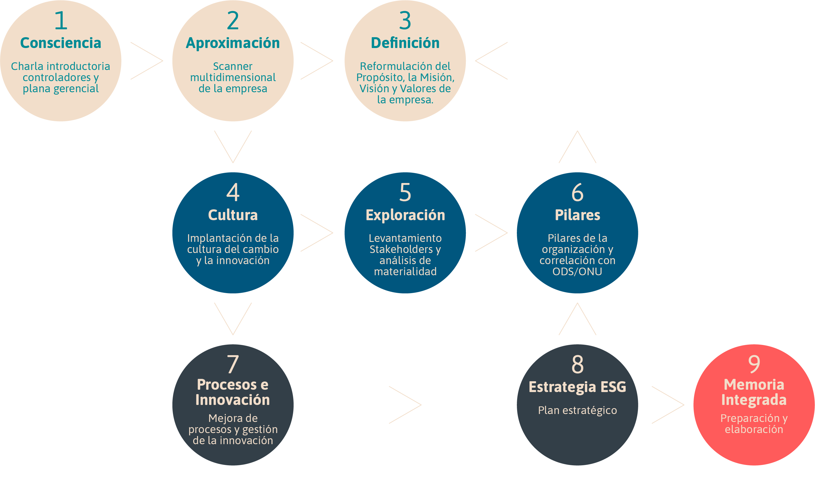 Inspiramos y acompañamos, la implementación consciente y articulada de los criterios ESG en sus diferentes niveles